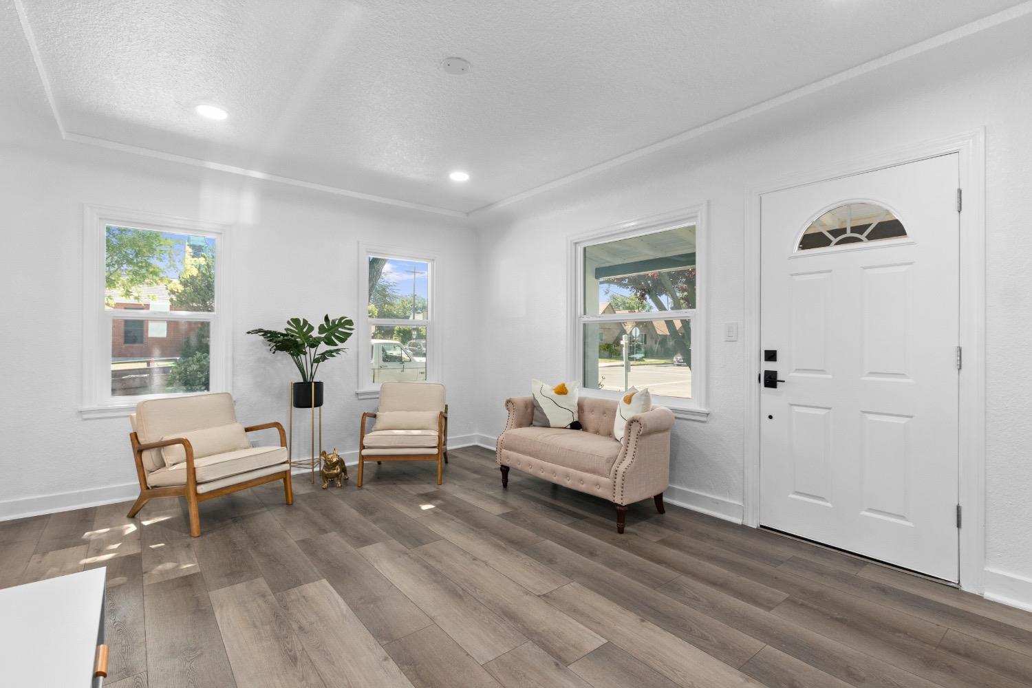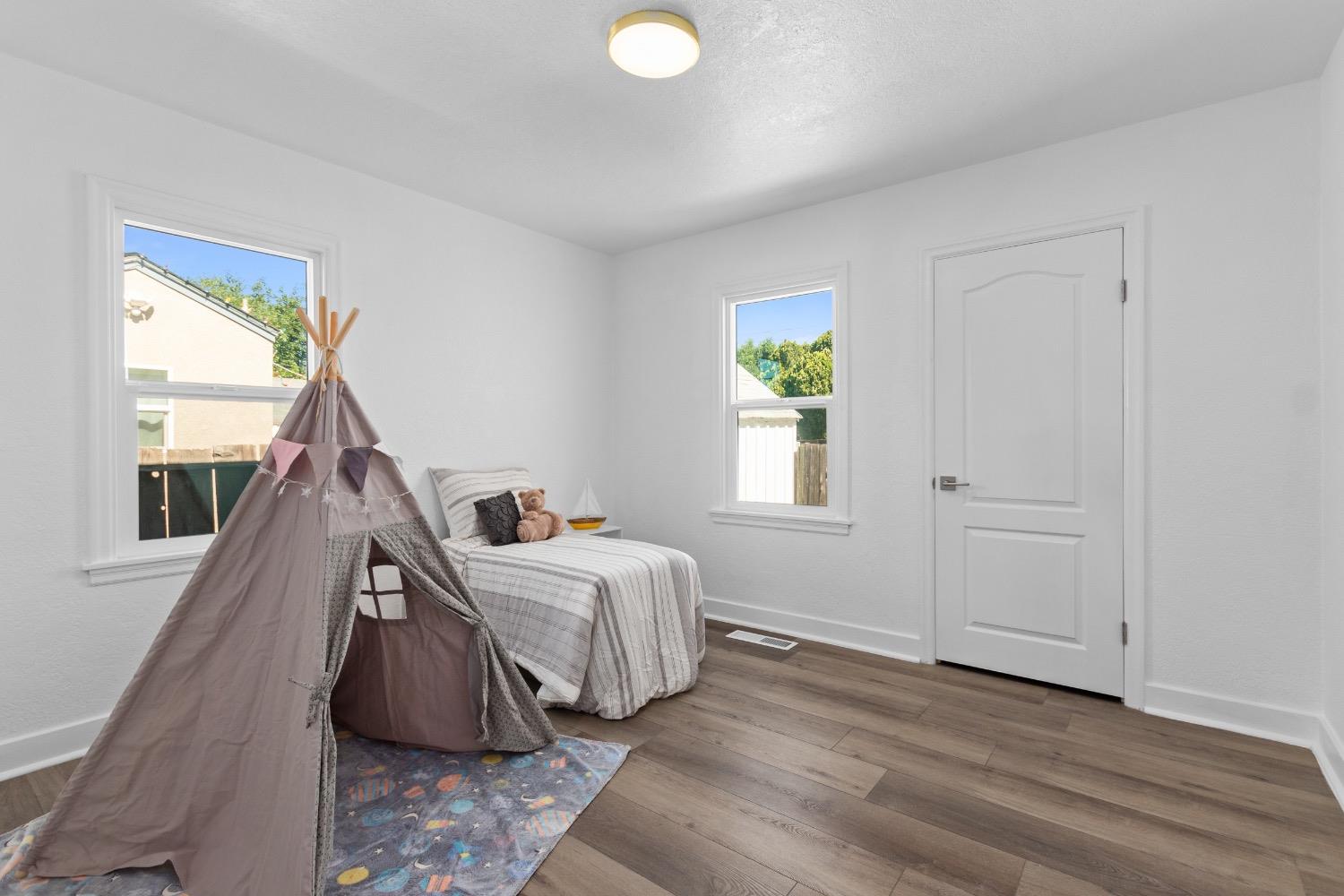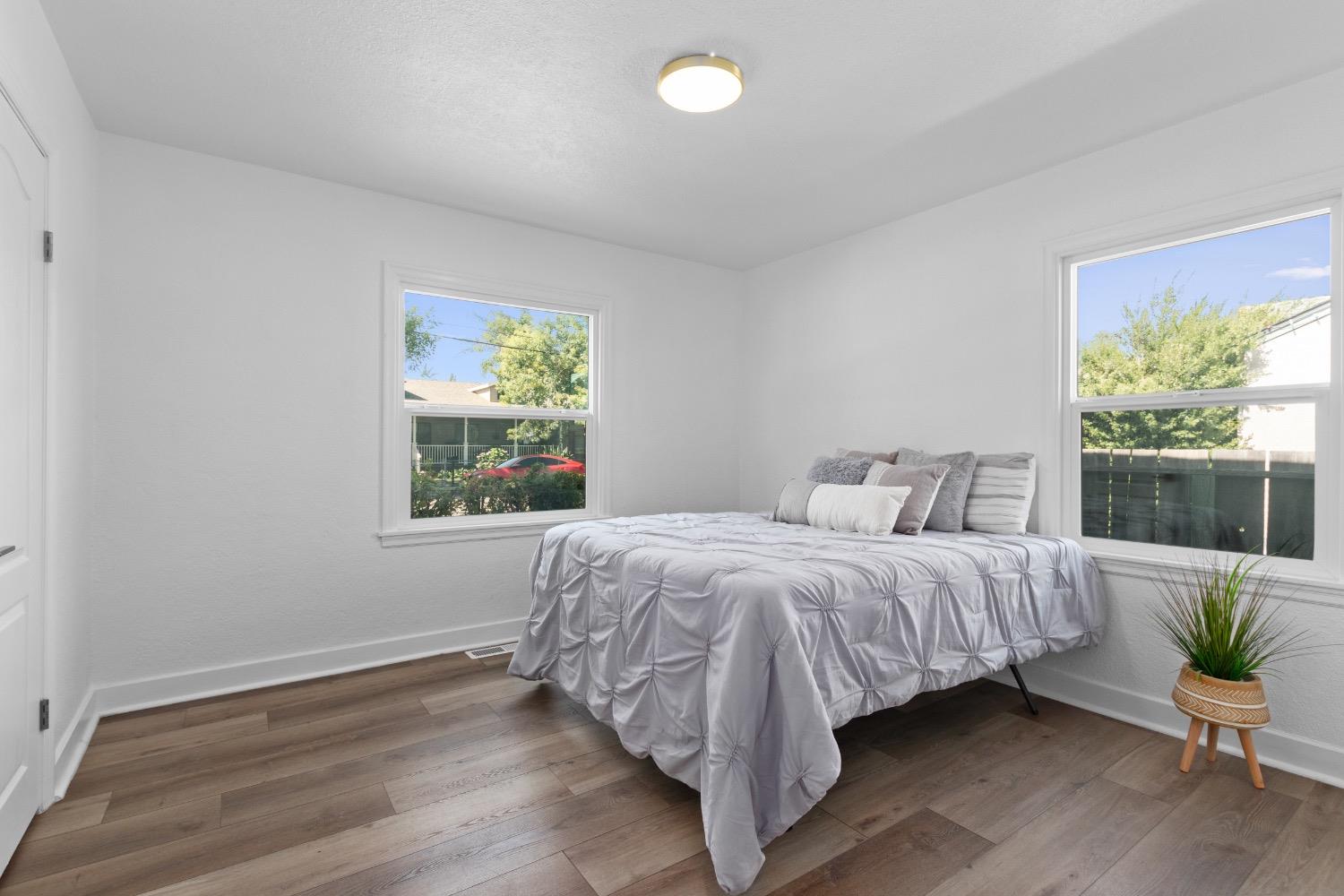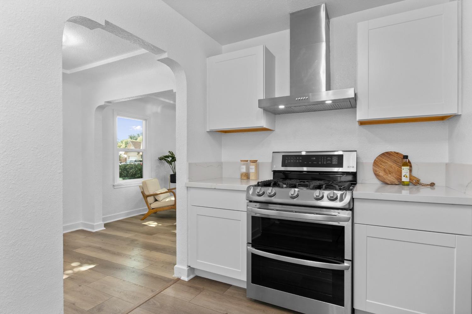 Step into a timeless blend of classic charm and comfort in this captivating 2-bedroom, 1-bathroom home nestled in the heart of Tracy. This charming gem is perfectly situated on a spacious corner lot, offering both comfort and convenience. The interior has been lovingly updated to enhance its appeal, showcasing a harmonious balance of modern upgrades and timeless features that create a unique and inviting ambiance. As you step inside, you'll be greeted by the sleek and modern cool grey vinyl flooring that flows seamlessly throughout the entire home. The freshly repainted interior and exterior create a bright and welcoming atmosphere, ready for you to move right in. The newly renovated kitchen, featuring contemporary finishes, abundant natural light, a gorgeous stainless steel gas range, and stunning quartz countertops that are both beautiful and maintenance-free create a modern and functional space. Exquisite brushed gold finishes adorn this home, adding a touch of luxury and sophistication to every corner. One of the standout features of this property is its prime location, offering convenient walking access to Tracy's vibrant downtown home to Tracy's Farmer's Market, local restaurants, coffee shops, schools, parks, and medical offices. Everything you need is just a stroll away.