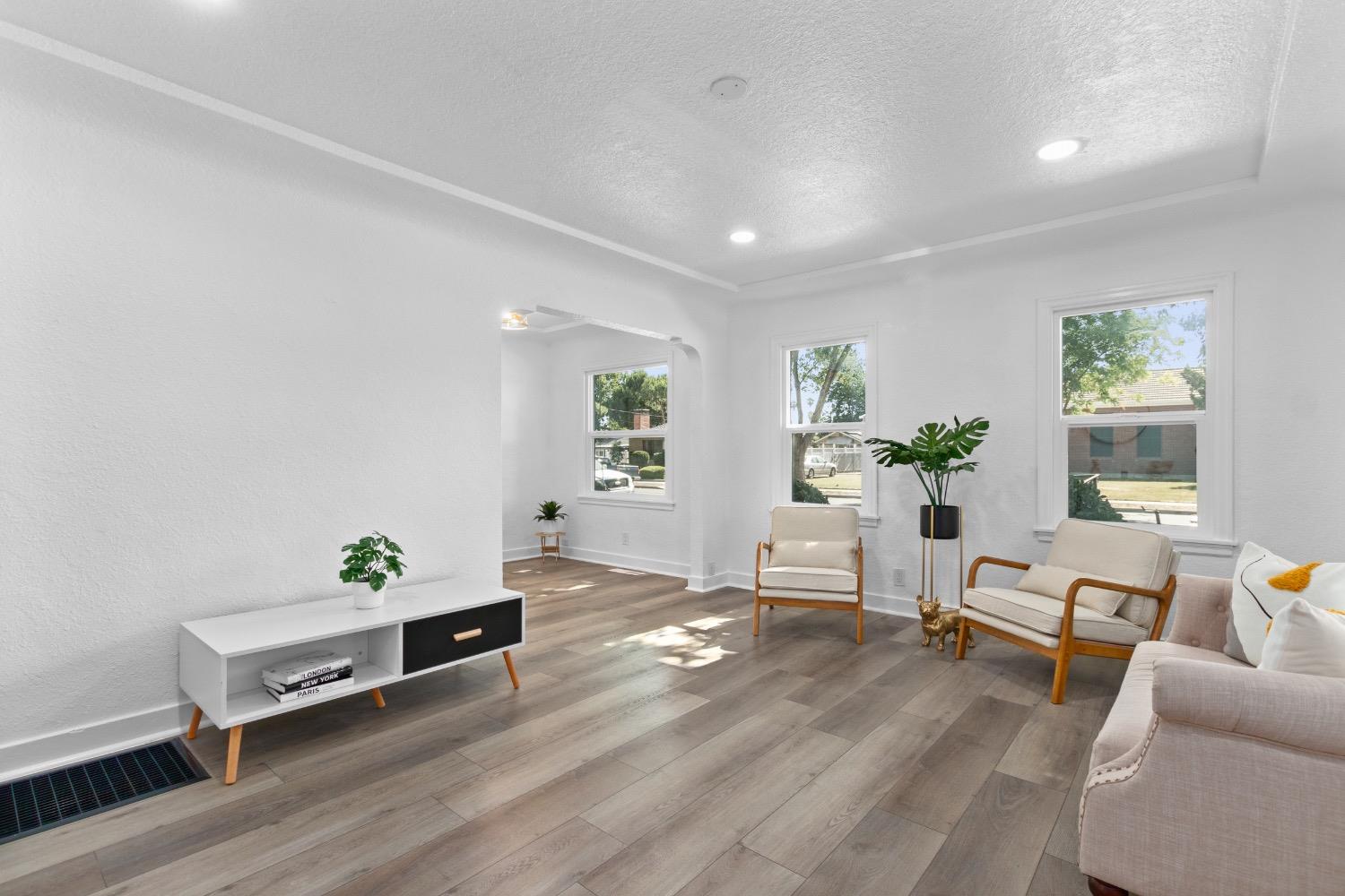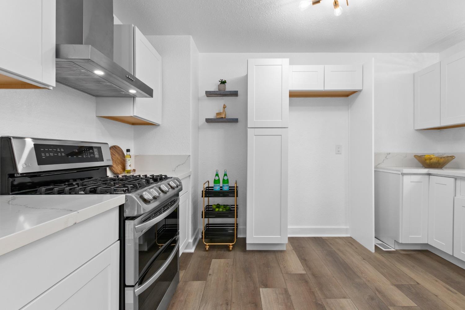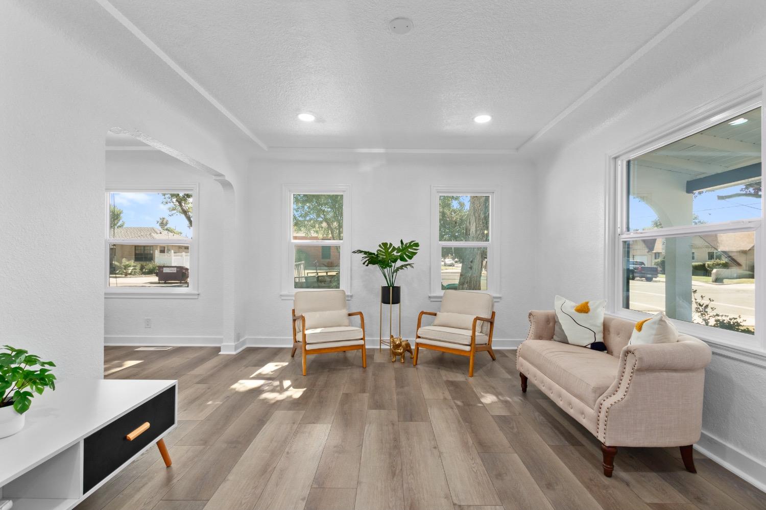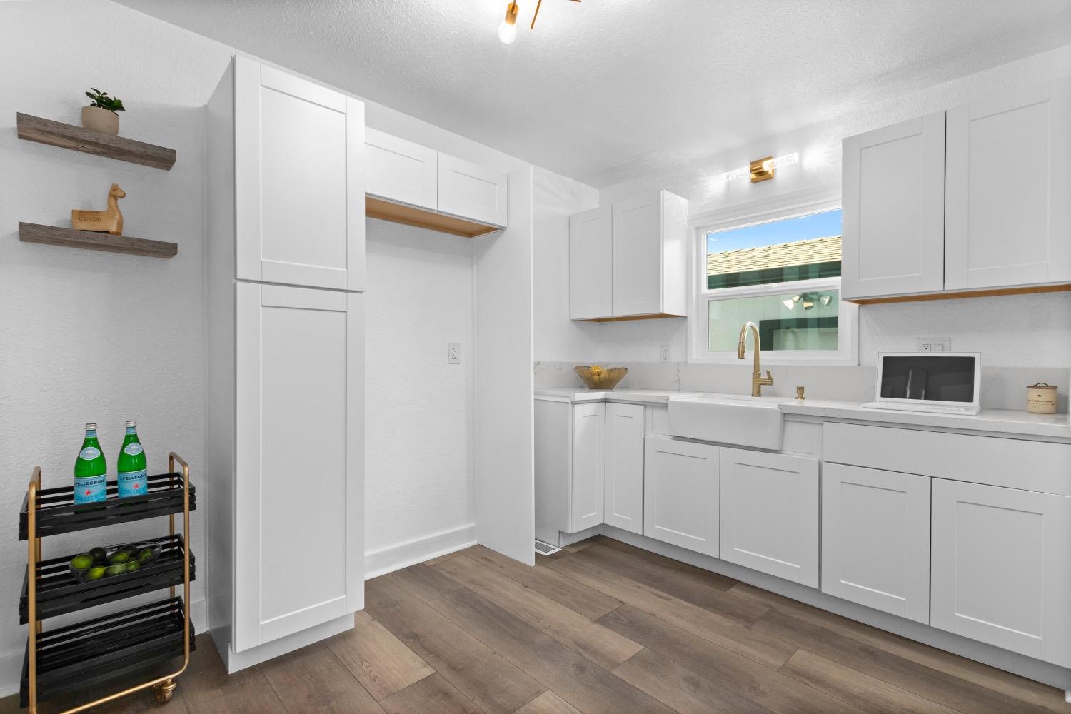 Step into a timeless blend of classic charm and comfort in this captivating 2-bedroom, 1-bathroom home nestled in the heart of Tracy. This charming gem is perfectly situated on a spacious corner lot, offering both comfort and convenience. The interior has been lovingly updated to enhance its appeal, showcasing a harmonious balance of modern upgrades and timeless features that create a unique and inviting ambiance. As you step inside, you'll be greeted by the sleek and modern cool grey vinyl flooring that flows seamlessly throughout the entire home. The freshly repainted interior and exterior create a bright and welcoming atmosphere, ready for you to move right in. The newly renovated kitchen, featuring contemporary finishes, abundant natural light, a gorgeous stainless steel gas range, and stunning quartz countertops that are both beautiful and maintenance-free create a modern and functional space. Exquisite brushed gold finishes adorn this home, adding a touch of luxury and sophistication to every corner. One of the standout features of this property is its prime location, offering convenient walking access to Tracy's vibrant downtown home to Tracy's Farmer's Market, local restaurants, coffee shops, schools, parks, and medical offices. Everything you need is just a stroll away.